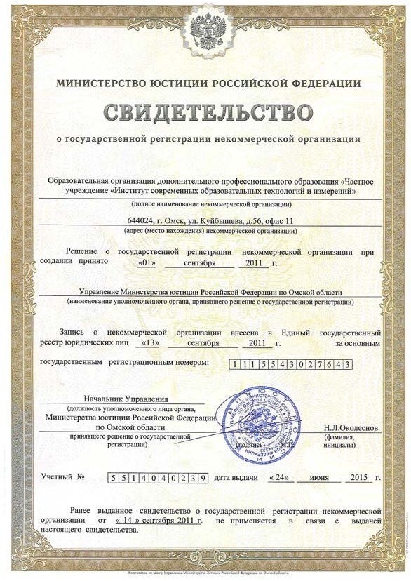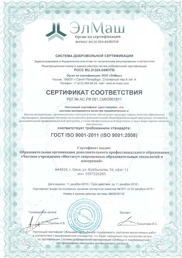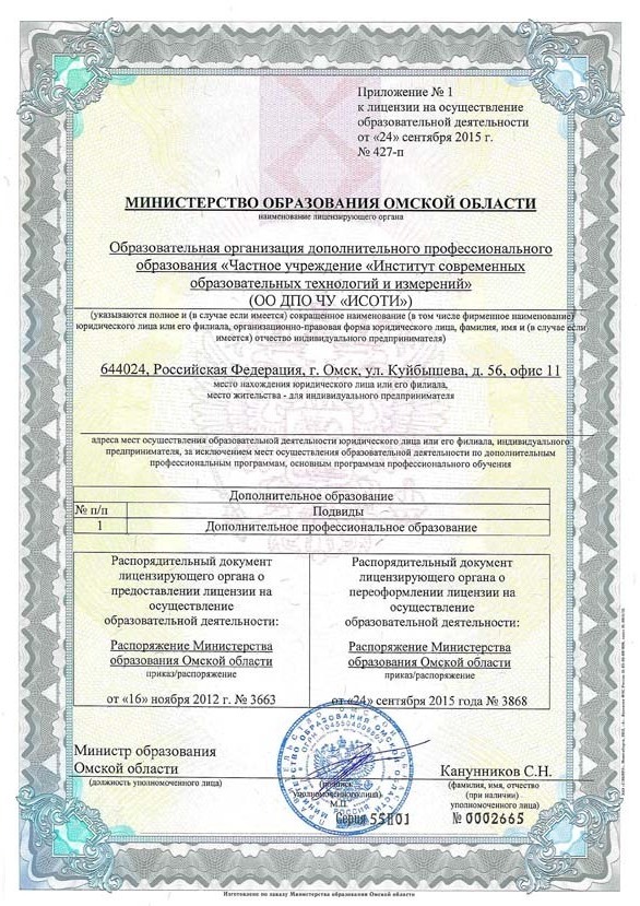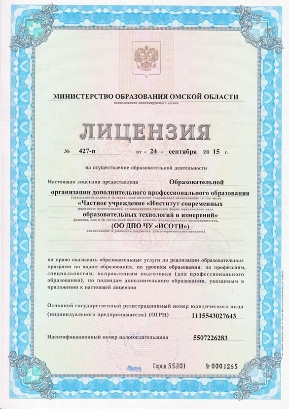 МЦК МП является структурным подразделением многопрофильного образовательного учреждения дополнительного профессионального образования - Институт современных образовательных технологий и измерений. Весь образовательный процесс ведется в полном соответствии с Федеральным законом "Об образовании в Российской Федерации" № 273-ФЗ. Слушателям, прошедшим обучение и итоговую аттестацию, выдаются документы установленного образца - удостоверение и диплом. Удостоверение выдается слушателям, прошедшим курсы повышения квалификации, диплом - курсы профессиональной переподготовки. Ниже приведены образцы выдаваемых документов.