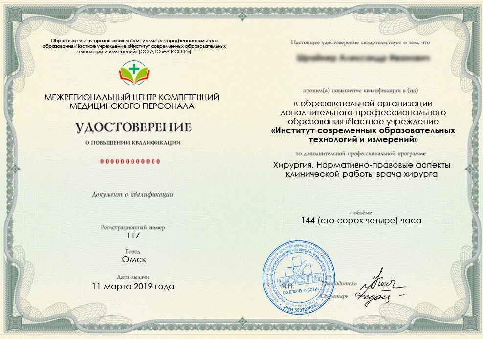 Образец УДОСТОВЕРЕНИЯ о повышении квалификации. Удостоверяет повышение квалификации и присваивает баллы НМО