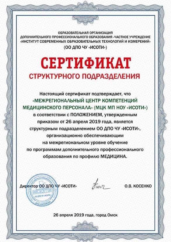 Межрегиональный центр компетенций медицинского персонала ОО ДПО ЧУ "ИСОТИ"